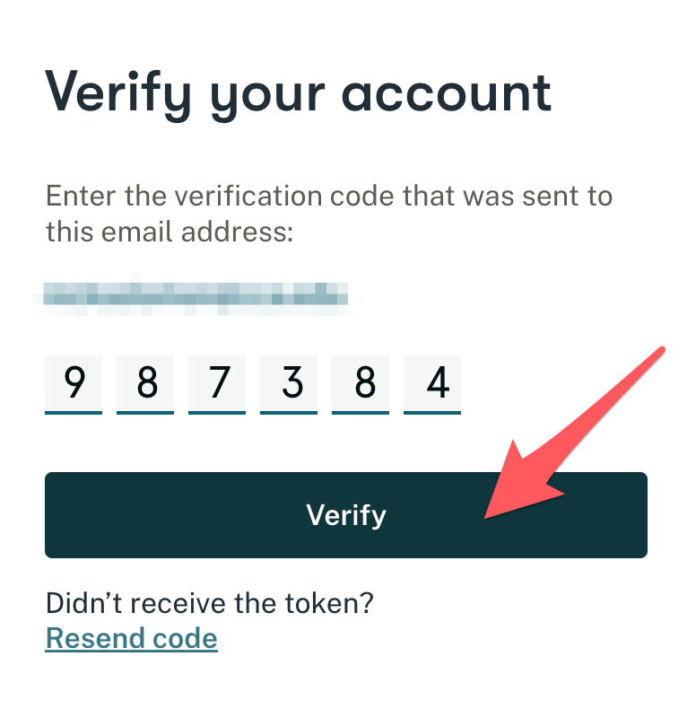 Check your email inbox for the code, then copy and paste it into the field provided. Select 'Verify' to proceed.