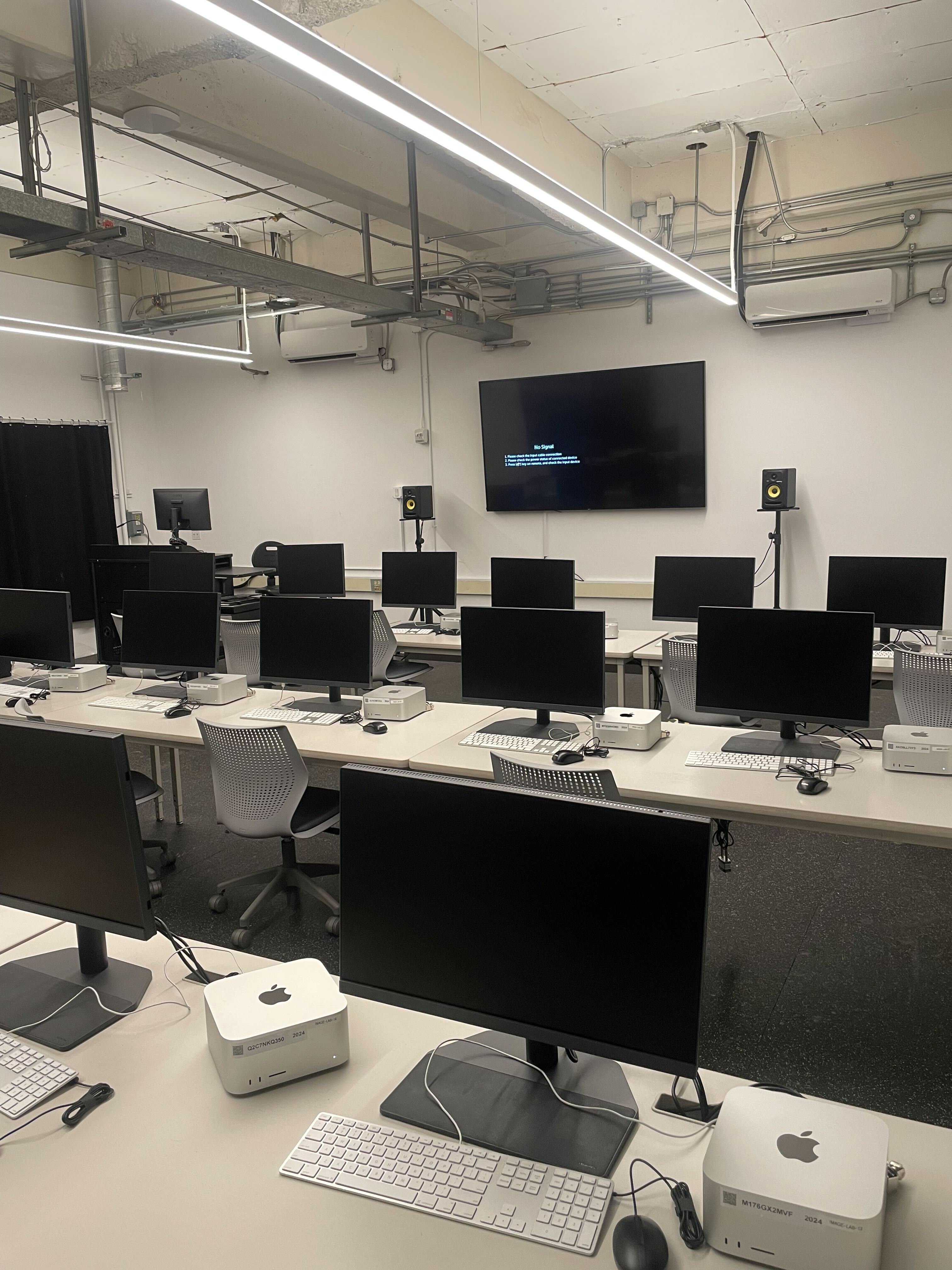 Located on the second floor of the Main Building in Room 204, this lab is geared for film post production and digital photo editing.